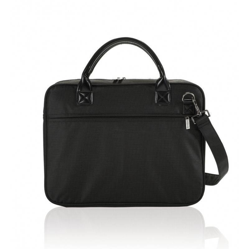 Trendy vormgegeven dames laptoptas. Uitgevoerd in gestreept dobby nylon. Hoofdvak met apart laptopcompartiment (15'') en extra voorritsvak. De gehele tas is gevoerd en gepolsterd voor optimaal comfort en bescherming. Met afneembare schouderriem.