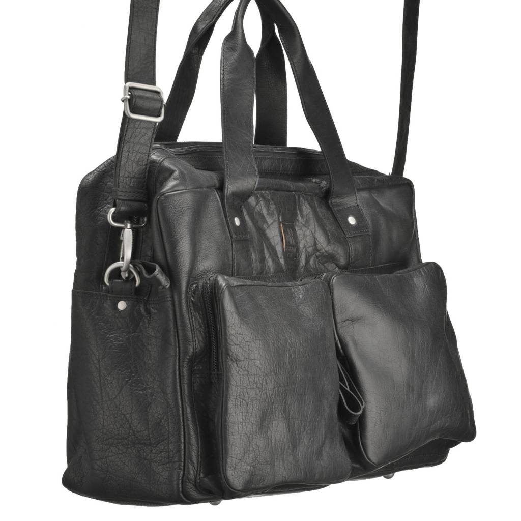 Deze ruime weekender is uitgevoerd in rund leder met een stoere uitstraling. De tas heeft diverse vakken, waaronder twee afsluitbare vakken aan de voorzijde van de tas. Voor het draagcomfort is een brede schouderband toegevoegd. De tas heeft een bovenrits en diverse ruime vakken aan de binnenzijde waarvan een softpocket voor het veilig opbergen van de tablet of laptop.