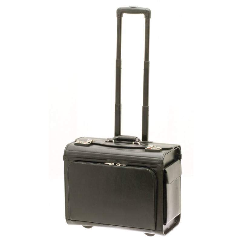 Zeer mooie kwaliteit lederen pilotenkoffer met telescoophengsel. Met groot hoofdvak, inclusief insteekvakken en laptopcompartiment. Tevens extra voorvak voor documenten. Zijvak voor telefoon of accessoires. Afsluitbaar met cijferslot.