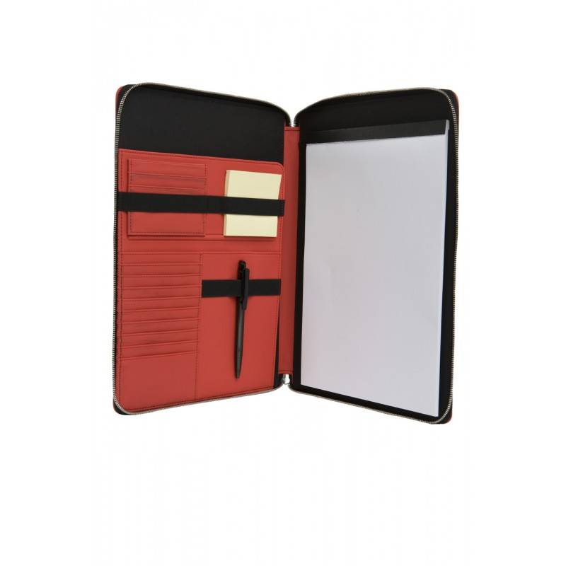 Strak vormgegeven A4 schrijfmap SKUBA (Senator) in diverse trendy kleuren. Met diverse vakken en afsluitbaar met ritssluiting. Geleverd inclusief pen, schrijfblok en memoblok.