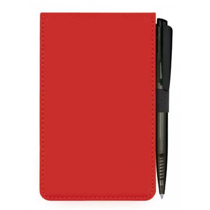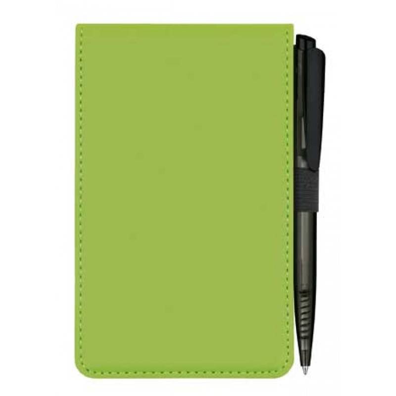 Compact notitieblokje. Verkrijgbaar in div. kleuren.